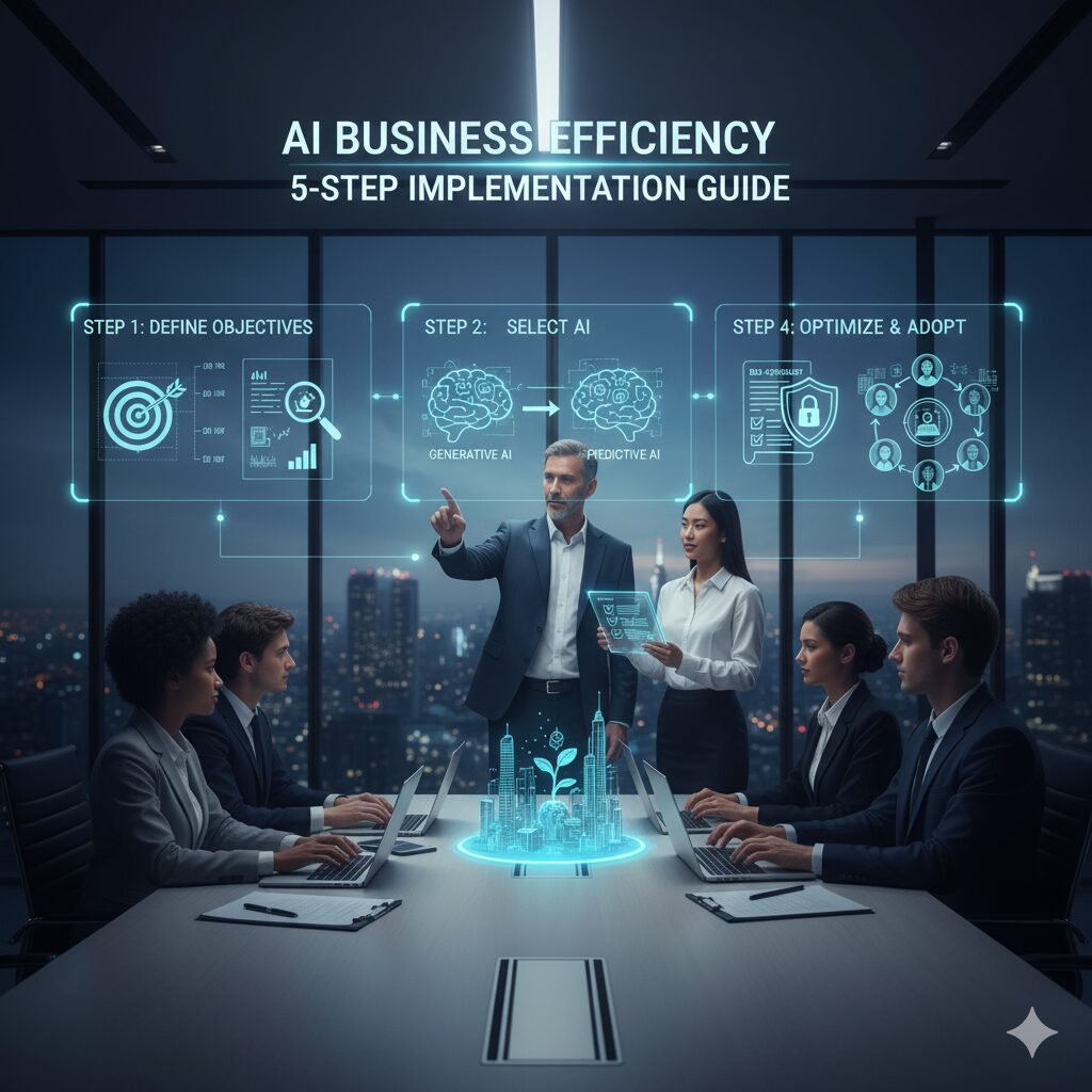 AI導入は「魔法の杖」ではありません。明確な戦略と手順に基づかずに進めると、「導入したものの使われない」「期待した効果が出ない」といった失敗に陥りがちです。ここでは、AIによる業務効率化を成功に導くための、実践的な5つのステップを解説します。
